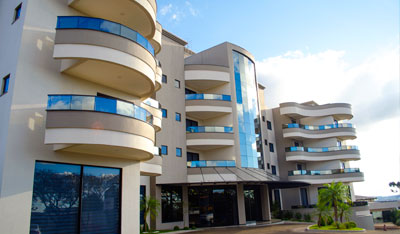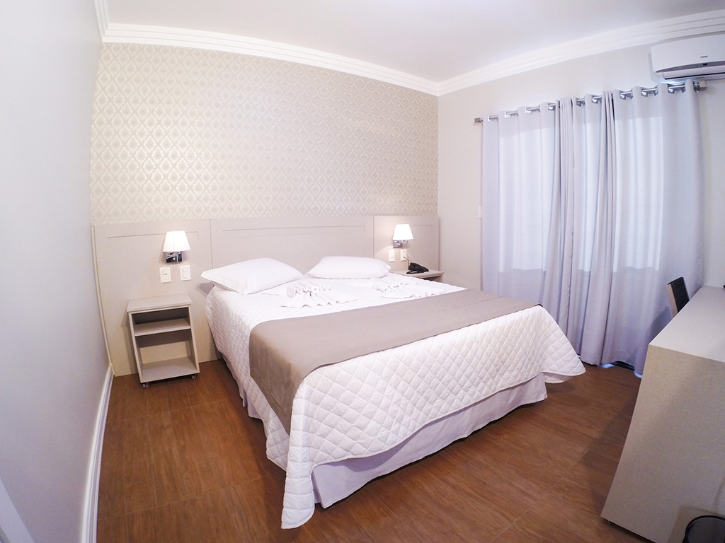 Em uma área de 7000 m² com total segurança, os hospedes dispõe de estacionamento coberto, piscina coberta aquecida, academia, 3 auditórios para eventos e 2 elevadores.